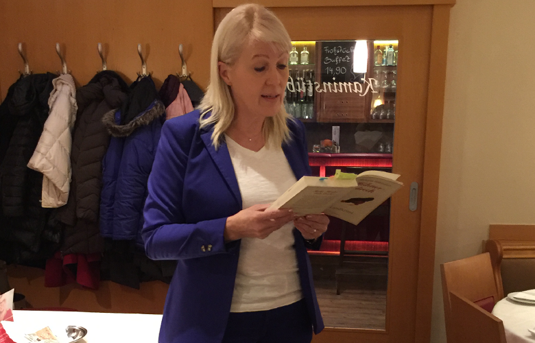 Karin Dollinger lädt alle Interessierten herzlich zur Veranstaltung ein: „Wir freuen uns sehr über Michaelas Lesung, für Getränke und Snacks wird gesorgt sein. Wir freuen uns auf einen unterhaltsamen Abend!“
