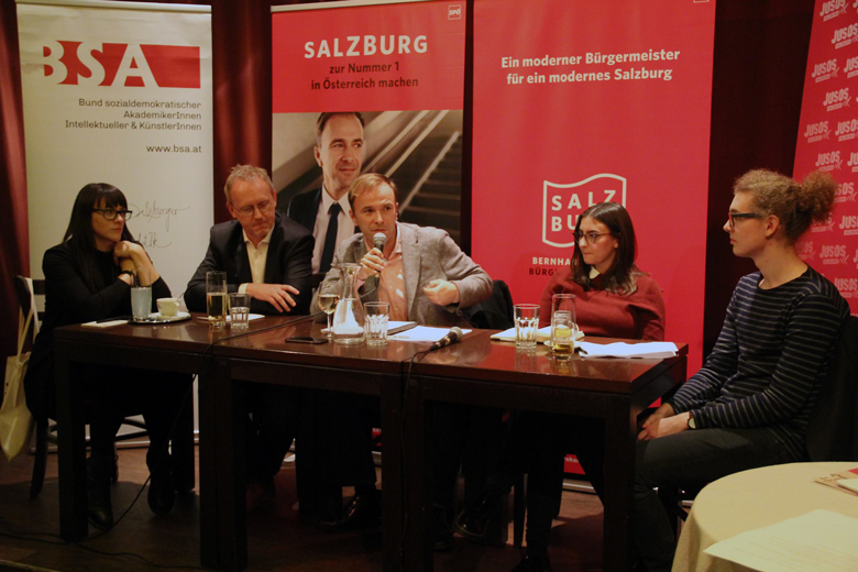 „Wer hat die Deutungshoheit über diese Stadt? Es gibt konsumfreie Räume, allerdings nicht im Herzstück, der Altstadt. Nicht nur die jungen Salzburgerinnen und Salzburger meiden die Altstadt“, gab Janine Heinz vom Frauenkollektiv Salzburgs Töchter zu bedenken. Als ersten Schritt zur Ausweitung solcher Räume nannte Auinger die Öffnung der Freizeitanlagen: „Wir werden Sportplätze und Turnhallen in Schulen zukünftig zugänglich machen. Über ein transparentes Buchungssystem im Internet wird jeder günstig Räume buchen können.“