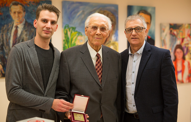 Herbert Moritz mit Walter Steidl und Matteo Gebhard bei der Verleihung der Viktor Adler Plakette an Herbert Moritz im Jahr 2016
