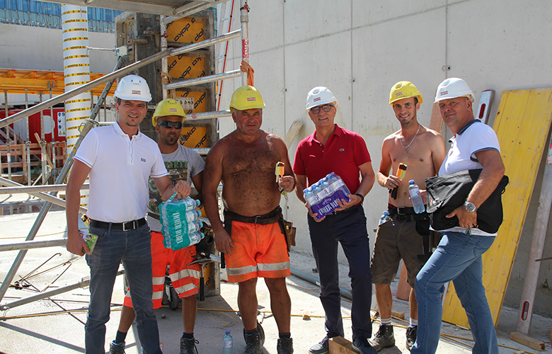 „Wenn die Temperaturen weit über die 30-Grad-Marke klettern, heute sogar auf 36, flüchtet jeder der kann in den Schatten oder in das kühle Innere von Gebäuden. Jene, die ihren Beruf im Freien ausüben müssen, gehen in diesen Tagen an ihre Grenzen. Ganz besonders trifft das auf die vielen Bauarbeiter zu“, sagt Walter Steidl, der zur Erfrischung heute kalte Getränke und Eis auf Baustellen verteilte.
